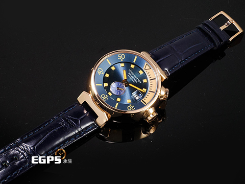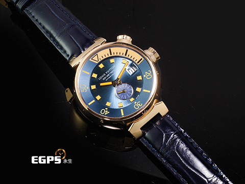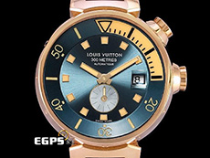 | LOUIS VUITTON 路易威登 LV Tambour Diver Q103E 18K玫瑰金材 藍色放射紋面盤 整只錶重約4.6兩 自動上鏈 42mm |