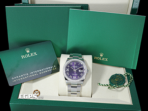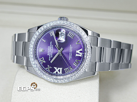 | ROLEX 勞力士 Datejust 36 蠔式日誌型 126284RBR 茄紫色羅馬數字VI、IX鑲鑽面盤 原鑲鑽圈 DJ36 不鏽鋼 2026年保卡 蠔式(Oyster)三節板帶 126284 RBR 自動上鍊 36mm |