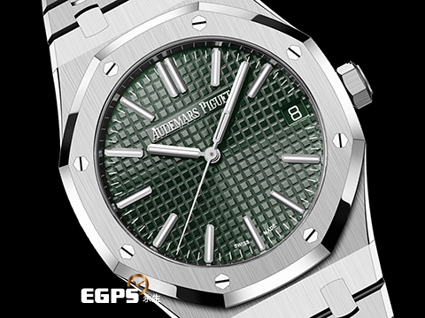 | Audemars Piguet 愛彼 AP錶 Royal Oak 皇家橡樹 15510ST.OO.1320ST.09 軍綠色格紋面盤 不鏽鋼材質 大三針 2024年保卡 自動上鍊 41mm |