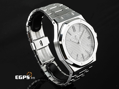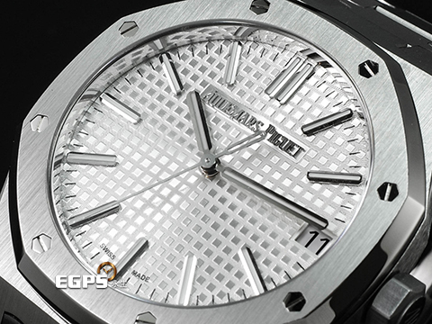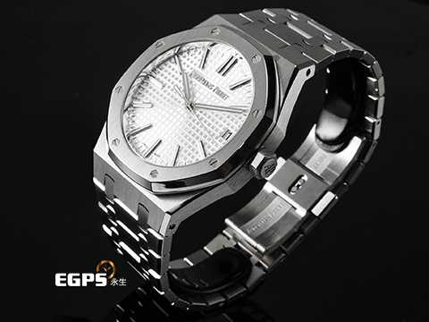 | Audemars Piguet 愛彼 AP Royal Oak 皇家橡樹 15510ST.OO.1320ST.08 不鏽鋼材質 鍊帶款 2025年保卡 已貼膜 經典銀白色格紋面盤 AP字樣自動盤 自動上鍊 41mm |
