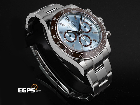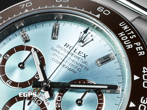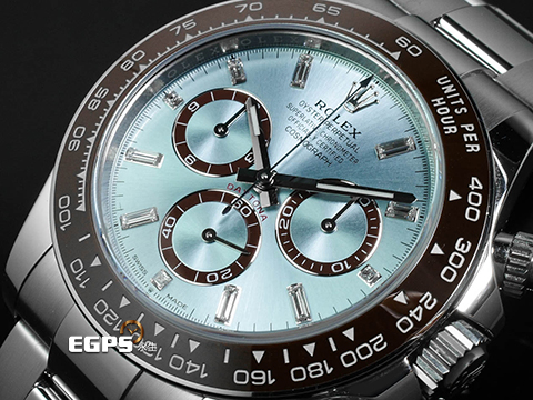 | ROLEX 勞力士 Daytona 迪通拿 126506 950鉑金材質 原廠鑲鑽冰藍色錶面 栗棕色計時圈 陶瓷錶圈 新款透背 冰藍鑽面 2026年保卡 自動上鍊 計時碼錶 40mm |