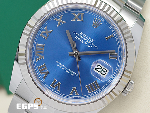 ROLEX 勞力士 Datejust 41 蠔式日誌型 126334 天藍色面盤 經典羅馬數字時標 不鏽鋼 經典 DJ41 經典三角坑紋錶圈 2026年保卡 蠔式(Oyster)三節錶帶 自動上鍊 41mm