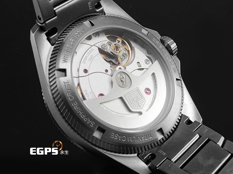 鈦合金材質錶殼、摺疊帶扣 / 灰色面盤、夜光指針、柱狀時標 / 藍寶石水晶玻璃、透明錶背 |