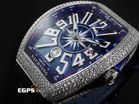 | Franck Muller 法蘭穆勒 FM Vanguard YACHT V41 SC DT 不鏽鋼材質 精鑲鑽石錶殼、錶扣 藍色面盤 自動上鏈 40.8X50mm |
