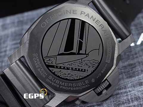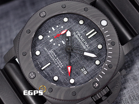 | PANERAI 沛納海 Submersible Luna Rossa GMT PAM01039 兩地時間 美洲杯帆船賽 特別款 2022年保單 PAM1039 碳纖維複合物材質、高科技碳纖維船帆織紋面盤 潛水腕 自動上鍊 47mm |