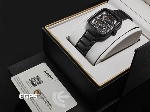| RADO 雷達 True Square 真我方形系列 R27174712 限定款 黑色陶瓷材質 12顆鮮豔紅寶石時標 2026年保卡 自動上鍊 38mm |