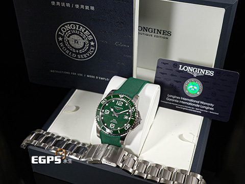 LONGINES 浪琴 Hydro Conquest 康卡斯 深海征服者 L37854066 浪鬼 綠色陶瓷圈、陶瓷拉絲面盤 綠水鬼 不鏽鋼 專賣店特別版 附原廠快拆式橡膠錶帶 2021年台灣公司貨 潛水錶 自動上鍊 41mm