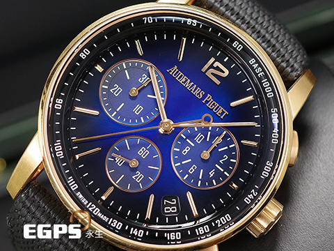 | Audemars Piguet 愛彼 AP錶 Code 11.59系列 Flyback Chronograph 飛返 計時碼錶 26393OR.OO.A002KB.03 漸層藍 煙燻藍色亮漆面盤 26393 OR 玫瑰金 2022年保單 自動上鍊 41mm |