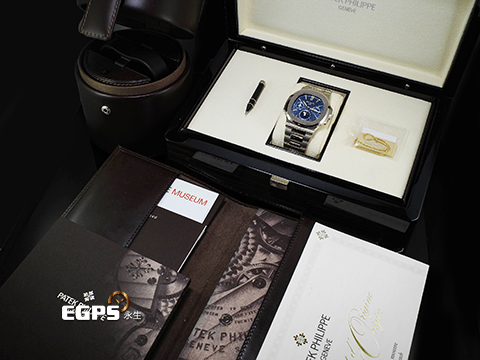 2021/Patek philippe 百達翡麗 PP錶 Nautilus Perpetual Calendar 金鷹 鸚鵡螺 5740/1G-001 藍色日輝紋面盤 金鷹系列首款超薄萬年曆腕錶 萬年曆 月向盈虧 18K白金材質 2021年保單 附原廠自動上鍊盒 5740 自動上鍊 40mm