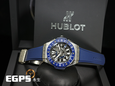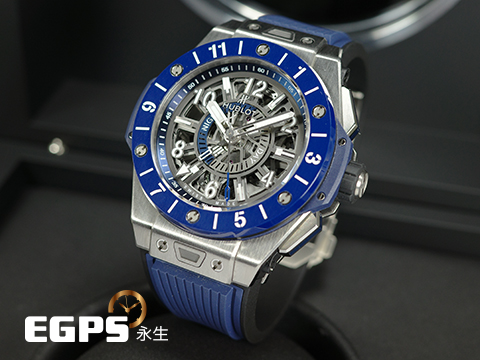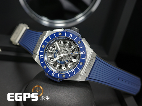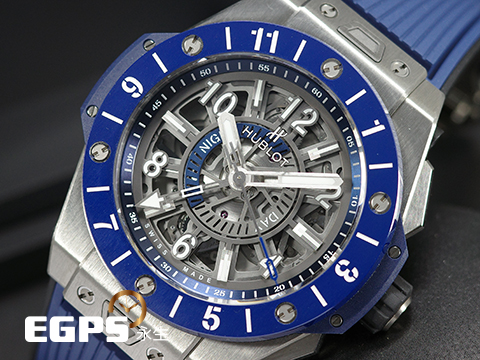 HUBLOT 宇舶 Big Bang 大爆炸 Unico GMT 三日鍊 兩地時間 471.NL.7112.RX 鈦金屬材質 藍色陶瓷錶圈 鏤空面盤 2021年保卡 自動上鍊 45mm |