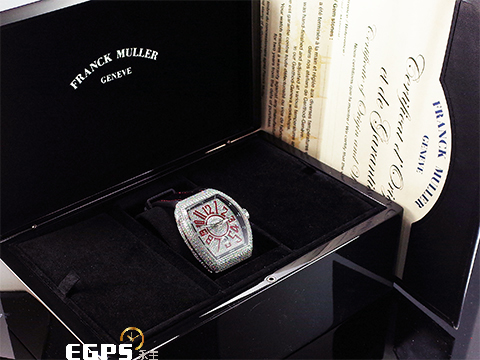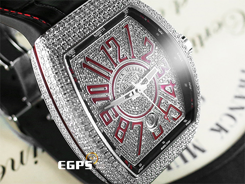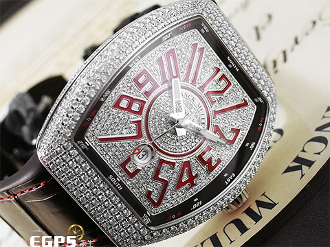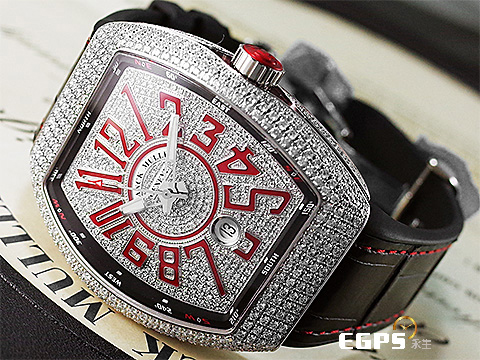 Franck Muller 法蘭穆勒 FM Vanguard V45 不鏽鋼材質 精鑲滿天星面盤 紅色阿拉伯數字立體時標 自動上鍊 44x54mm |