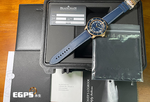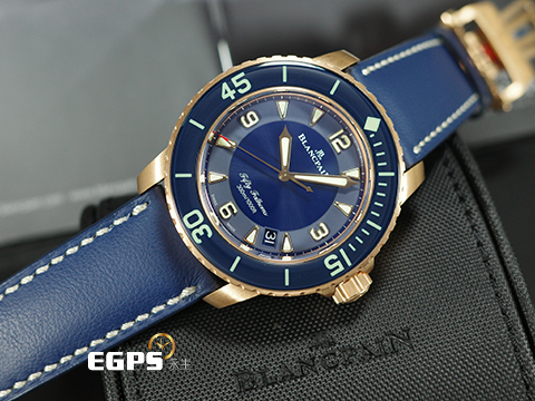 | BLANCPAIN 寶鉑 Fifty Fathoms 5015 五十噚系列 5015-3603-C63B 藍色面盤 重量級玫瑰金材質 傳奇五十噚錶 2025年保單 潛水錶 自動上鍊 45mm |