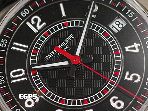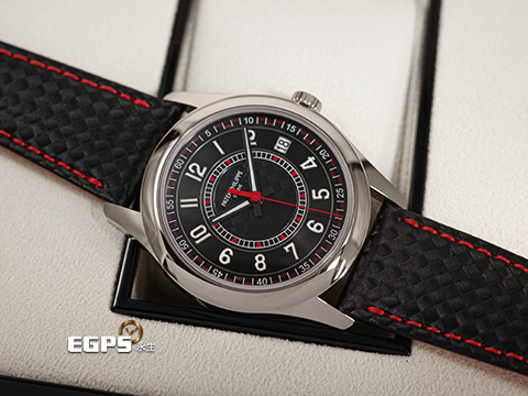 PATEK PHILIPPE 百達翡麗 PP錶 Calatrava 6007G-011 烏木黑色 中央「碳纖維」浮雕圖案面盤 6007 G 大三針 紅色秒針、三角形刻度與格狀刻度 18K白金材質 2025年保單 自動上鍊 40mm |