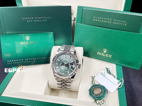 ROLEX 勞力士 Sky-Dweller 蠔式 天行者 336934 最新9002機芯 薄荷綠色面盤 沙羅系統 年曆錶 兩地時區 經典三角坑紋錶圈 2025年保單 紀念型(Jubilee)五銖錶帶 自動上鍊 42mm |