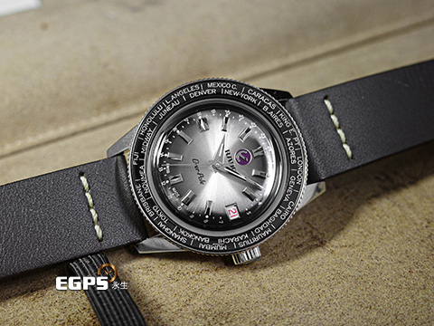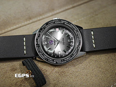 不鏽鋼材質錶殼 / 雙向世界時區陶瓷錶圈 / 灰色面盤 / 夜光指標立體時標 / 藍寶石水晶玻璃 /原廠棕色皮錶帶 |