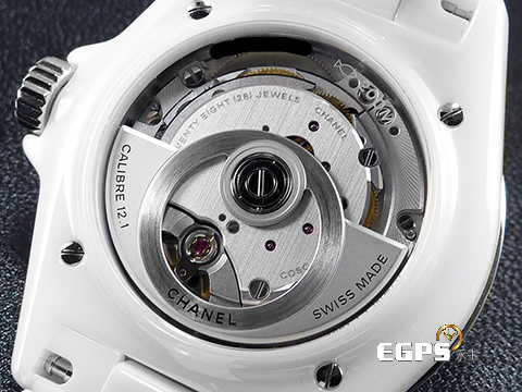 全新J12腕錶系列搭載新款Caliber 12.1自動上鍊機械機芯,其為CHANEL腕錶創意工作室所設計,並委由品牌新入股之 KENISSI製錶廠打造以持續不斷強化品牌在高級製錶領域的定位。此舉最初始於1993年品牌購入位於瑞士拉夏德芳(La Chaux-de-Fonds)的G&F Chatelain製錶廠,意欲為其作品提供最高品質的錶殼與機芯。