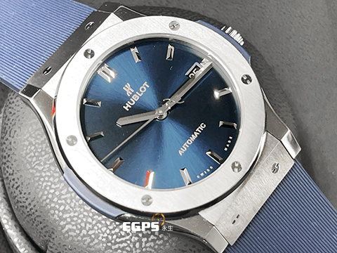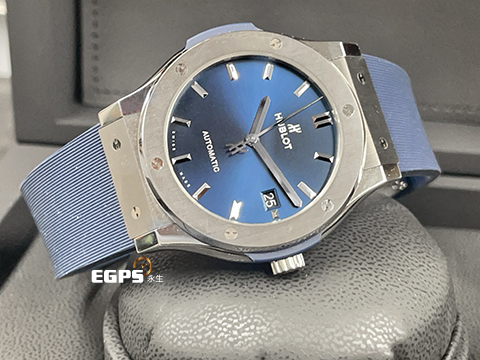 HUBLOT 宇舶 Classic Fusion 經典融合系列 511.NX.7170.RX 高硬度5級鈦金屬材質 藍色太陽紋面盤 2024年電子保單 自動上鍊 45mm