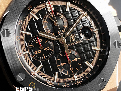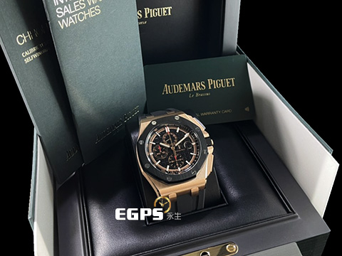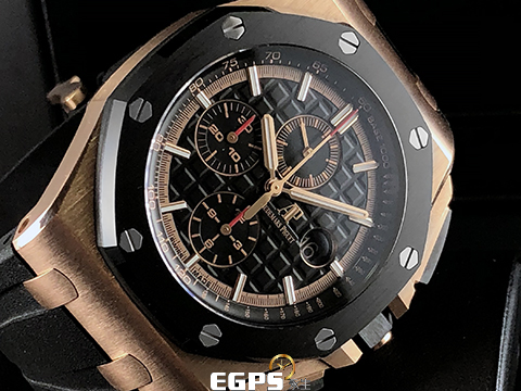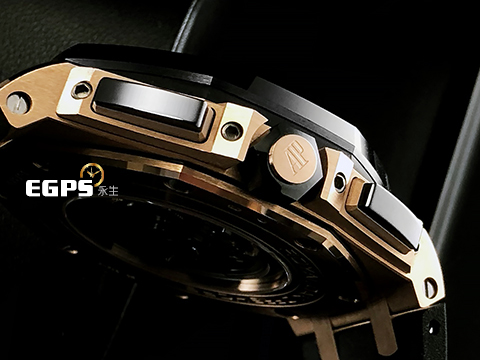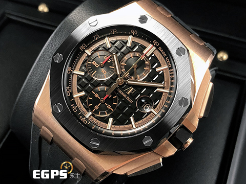 | Audemars Piguet 愛彼 AP錶 Royal Oak Offshore 2019年新卡 皇家橡樹 離岸型 ROO 計時碼表 26401 RO 玫瑰金 大金貓 26401RO.OO.A002CA.02 搭配原廠黑色紡織紋橡膠錶帶 陶瓷框 自動上鍊 44mm |