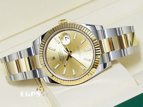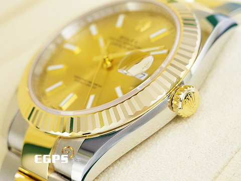 ROLEX 勞力士 DateJust 41 蠔式日誌型 126333 皇帝金面盤 18K黃金材質 半金款 DJ41 經典三角坑紋錶圈 2025年新式綠卡 蠔式(Oyster)三節錶帶 自動上鍊 41mm |