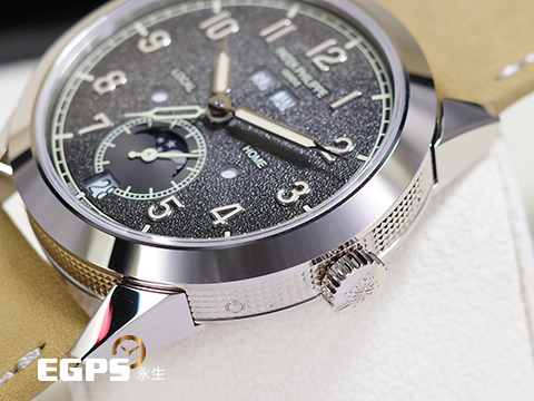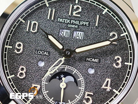 百達翡麗首度整合年曆裝置與旅行時間顯示系統,打造新款腕錶力作。 憑藉革新技術,這款腕錶可根據當地時間準確顯示日期。 為打造這項獨特功能,技術人員潛心研發新款自動上鍊機芯,由旅行時間裝置控制年曆,從而能夠向前和向後調校日期。 31-260 PS QA LU FUS 24H機芯擁有至少八項專利,以創新技術提升時計精度與性能,確保其更加安全可靠、方便易用。 錶款配備全新Calatrava錶殼,側緣雕飾巴黎釘紋圖案。 炭灰色錶盤流露復古韻味,輕微的顆粒感讓人聯想到古董相機外殼。 此新款時計配有兩款可互換錶帶,一款為米色絨面小牛皮,另一款為黑色小牛皮,飾有壓花紋理圖案和米色縫線。