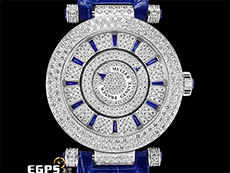 Double Mystery 顛覆了傳統腕錶結構,分針盤設在時針盤外,創作出繁複精妙的腕錶構造,並搭配不同的時分盤轉速。經典圓型錶殼內,轉盤式時分指針隨著時間在錶盤上流轉,配搭閃爍奪目的鑽石,增添雍容氣派,華麗奪目。