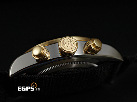 不鏽鋼搭配18K黃金材質錶殼、旋入式錶冠 / 黑色面盤 / 啞黑色陽極氧化鋁字圈 / 黑色織紋錶帶 /夜光指針及時標 / 藍寶石水晶玻璃鏡面 |