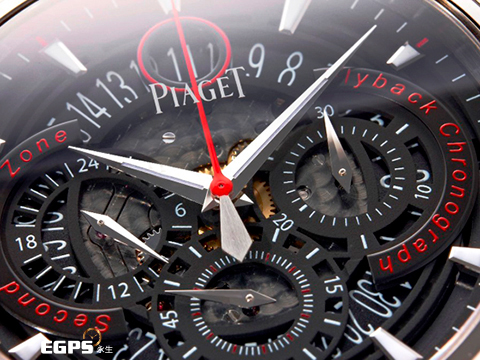 | PIAGET 伯爵 Polo Forty Five 飛返計時 第二時區功能 鈦金屬一體成型的錶殼 黑色和紅色鏤空錶盤 經典POLO工藝之美 計時碼表 G0A35001 全球限量500只 自動上鏈 45mm |