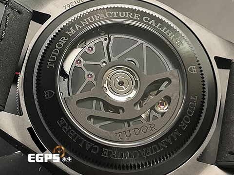 面盤6點方向的字樣點出了Black Bay Ceramic除了外殼換上黑陶瓷之外,內部也有重大突破的事實。這次帝舵改良了MT5602機芯,將它升級成MT5602-1U機芯,而且一如2021年較早推出的Black Bay 58 18K和Black Bay 58 925,這款黑陶瓷殼也啟用透明底蓋得以露出機芯面貌。第一眼看到MT5602-1U機芯會覺得它和帝舵先前的自製機芯不太一樣,除了零件鍍黑之外,它的底板採用磨光與噴砂交錯的裝飾也有別於品牌其他自製機芯。