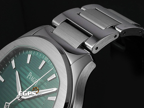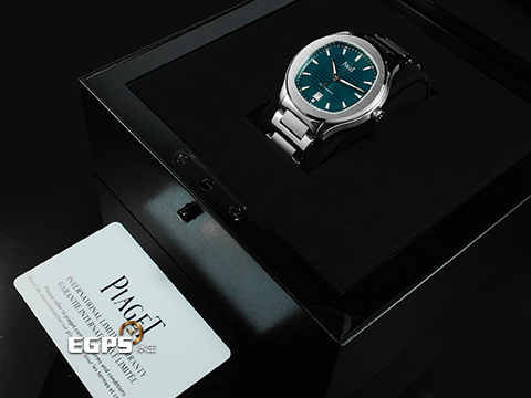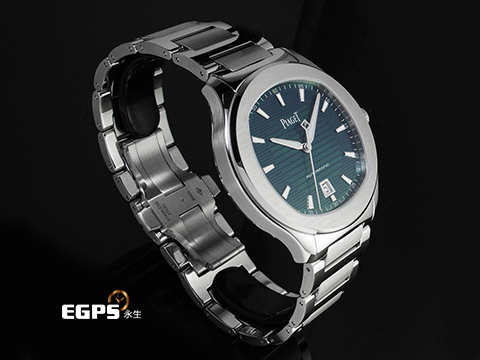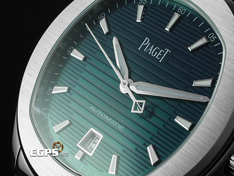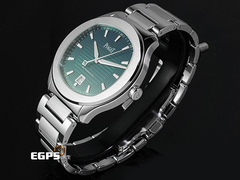 | PIAGET 伯爵 Polo Date系列 G0A49022 經典 枕型 不鏽鋼材質 綠色橫條紋雕紋面盤 2025年保卡 自動上鍊 42mm |