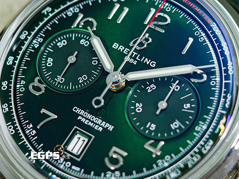 | BREITLING 百年靈 Premier B01 Chronograph 42 璞雅系列 AB0145 綠色面盤 計時碼表 不鏽鋼 B01自製機芯 2025年保單 自動上鍊 42mm |