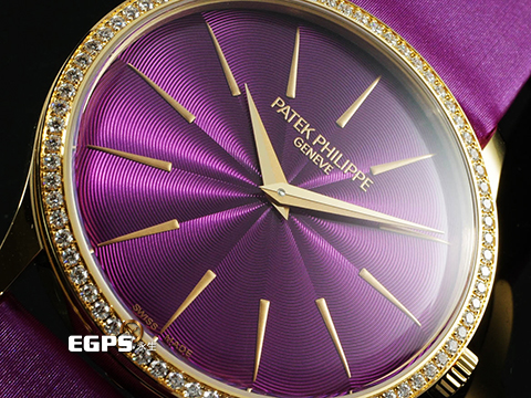 | Patek philippe 百達翡麗 PP錶 Ladies Calatrava Joaillerie 系列 4997/200R-001 原廠鑲嵌76顆頂級天然美鑽 紫色漆面同心波紋雕飾面盤 4997 玫瑰金材質 超薄 微型自動盤 2025年保單 自動上鍊 35mm |