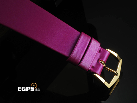 Patek Philippe 百達翡麗 Ladies Calatrava Joaillerie 腕錶 4997 系列首度加入玫瑰金款式,為這時計系列增添令人驚艷的紫色元素,腕錶的錶圈鑲嵌了76顆閃耀的鑽石紫色漆面錶盤上飾有壓花圖案,錶盤底板則綴飾同心波紋,並搭配超過五十層透明清漆的塗覆,紫色色塗漆錶面如夜空般深邃,交錯同心波浪紋理映照光影變幻,營造出深邃而迷人的效果。輕巧的玫瑰金錶殼直徑 35 毫米,厚度僅 7.4 毫米,適合各種場合的佩戴;搭配紫色緞紋小牛皮錶帶與玫瑰金針扣,整體造型優雅和諧,綻放永恆魅力。