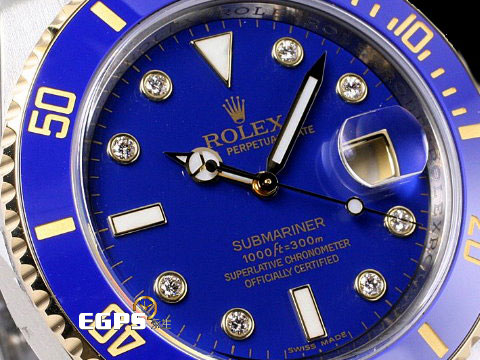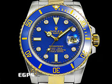 | ROLEX 勞力士 Submariner Date 潛航者 116613LB 藍水鬼 原廠鑽石時標 絕版藍色漆面盤 18K黃金 半金款 陶瓷框 116613 LB 亂碼字頭 潛水錶 自動上鍊 40mm |