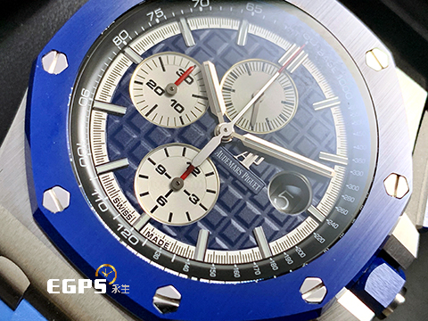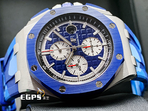 | Audemars Piguet 愛彼 AP錶 Royal Oak Offshore 皇家橡樹 離岸型 26400SO.OO.A335CA.01 藍色陶瓷圈 藍色熊貓面盤 ROO 計時碼表 不鏽鋼 26400 SO 藍迷彩 大熊貓 限量400只 台灣公司貨 2019年新式保卡 自動上鏈 44mm |