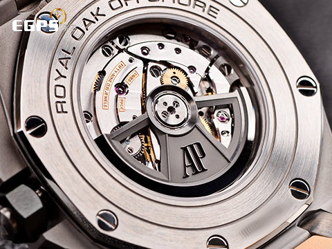 皇家橡樹離岸型計時碼錶不只外型出眾,內在的3126 / 3840自動上鍊機芯同樣可圈可點。這款機芯是以愛彼自製的3120機芯為基礎加裝計時模組而成,計時模組設於面盤下方,因此從錶背欣賞時看到的結構與3120無異。不過,愛彼為3126機芯換上專用的自動盤,與3120的裝飾還是有差異的。