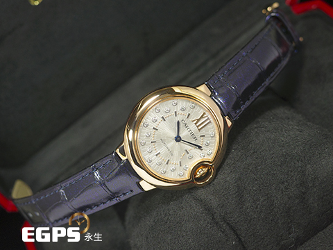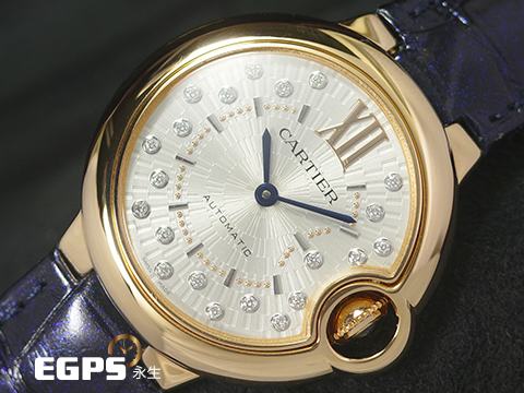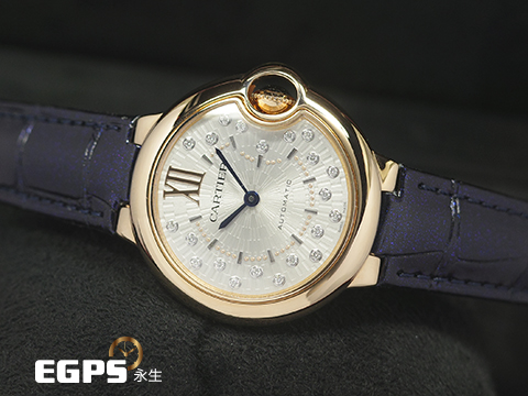 | CARTIER 卡地亞 BALLON BLEU 藍氣球 WGBB0053 18K玫瑰金材質 藍氣球 啞光鍍銀陽光射線壓紋錶盤鑲嵌21顆鑽石(共重0.10克拉) 2024年保卡 自動上鍊 36mm |