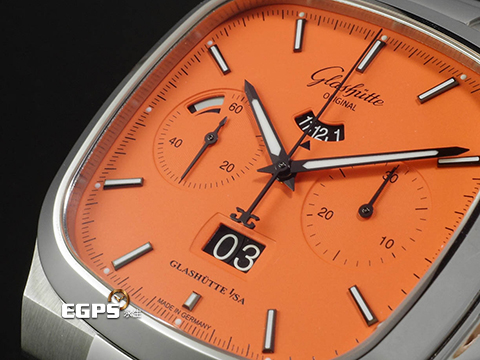 | GLASHUTTE ORIGINAL 格拉蘇蒂 70年代 Seventies Chronograph Panorama Date 橘色面盤 限量100支 1-37-02-11-02 德國錶 台灣公司貨 2022年保單 另附原廠不鏽鋼鏈帶 自動上鍊 40mm |