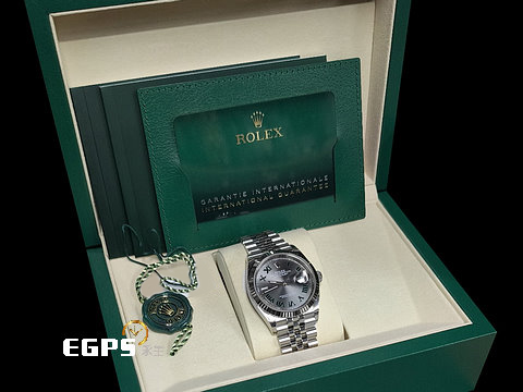 材質: 904L精鋼材質錶殼、五格鏈節錶帶、摺疊扣、旋入式錶冠 / 石板灰色綠羅馬字面盤 / 18K白金材質錶外框 / 藍寶石水晶玻璃鏡面