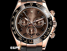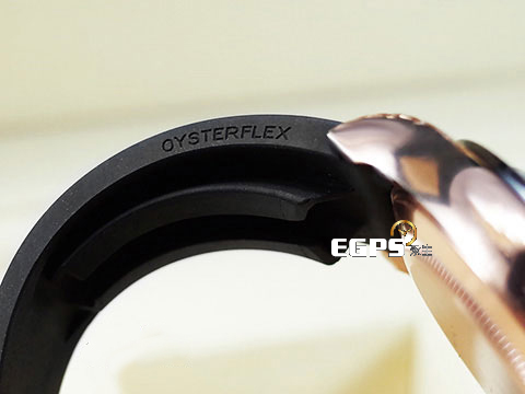 永恆玫瑰金材質錶殼、底蓋及折疊帶扣 / 絕版黑色阿拉伯數字時標巧克力色面盤 / 黑色陶瓷錶圈 / 玫瑰金旋入式錶冠及計時按鈕 / 專利Oysterflex橡膠錶帶 / 藍寶石水晶玻璃鏡面 |