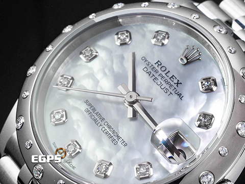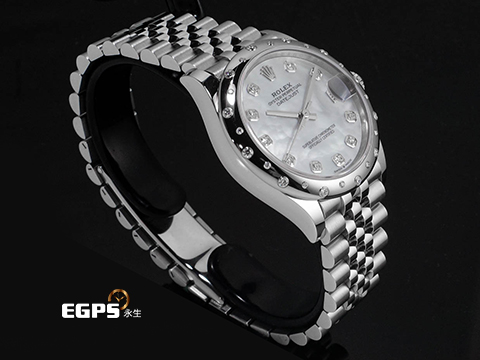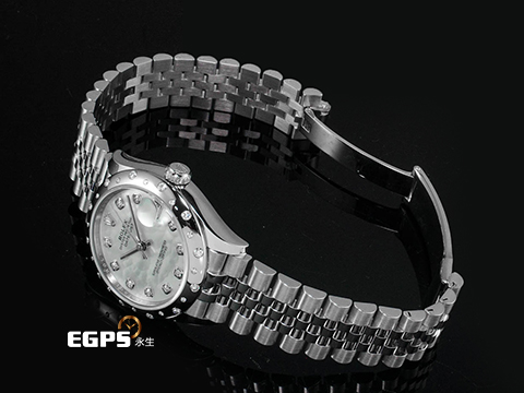 ROLEX 勞力士 Datejust 31 DJ31 經典 蠔式日誌型 278344RBR 不鏽鋼&18K白金鋼材質 天白色珍珠貝母面盤搭配原廠鑲嵌鑽石時標 原廠圓拱形鑲鑽錶圈 2025年保卡 自動上鍊 31mm