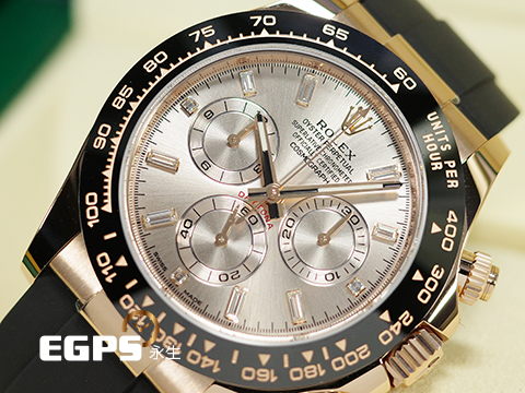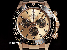 材質: 永恆玫瑰金材質錶殼、錶帶、摺疊扣、旋入式錶冠 / Cerachrom黑色陶瓷視距儀刻度錶框 / 日亮金色面盤、夜光指針、T鑽時標 / 藍寶石水晶玻璃 / 防偽內圈 / 黑色橡膠OYSTERFLEX表?