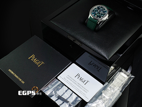 | PIAGET 伯爵 Polo Skeleton系列 枕型 G0A48005 不鏽鋼材質 8.65毫米超薄萬年曆 圓模雕刻紋理深祖母綠色錶盤 2024年保卡 新式快拆帶系統 附原廠綠色皮革錶帶 新錶訂價:1,970,000元 自動上鍊 42mm |