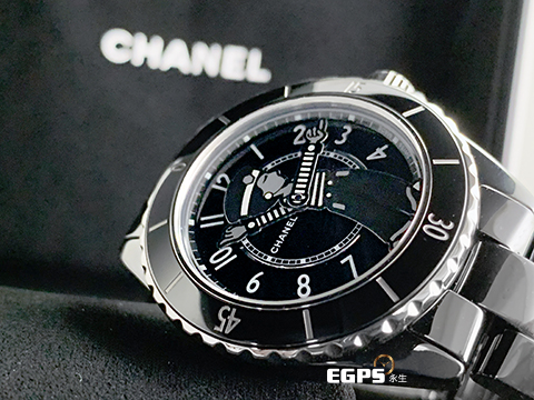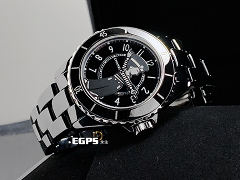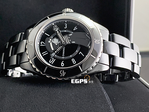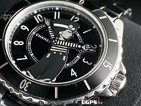 CHANEL 香奈兒 CHANEL Mademoiselle J12 La Pausa H7609 特別款 全新香奈兒女士形象圖案 條紋上衣、水手褲裝的衣著 2025年保卡 超限量 超熱門搶手貨 高科技 黑色陶瓷材質 自動上鍊 38mm