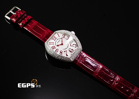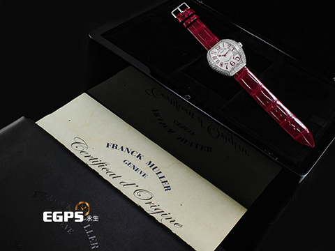 Franck Muller 法蘭穆勒 HEART 5002 MQ ZD C4 CD 18K白金材質 原廠鑲嵌鑽石錶殼 紅色羅馬數字時標及4點鐘心型鑲鑽時標 新錶訂價:1,305,000元 石英機芯 34.5x39.8mm