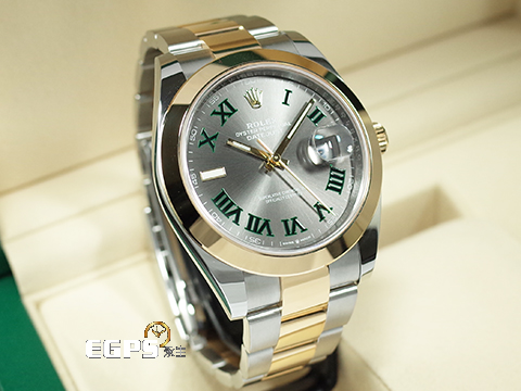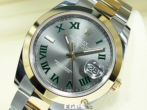 | ROLEX 勞力士 Datejust 41 蠔式日誌型 126303 石板灰色面盤搭配綠色羅馬數字時標 溫布頓 DJ41 半金款 18K黃金材質 2022年保卡 蠔式(Oyster)三節板帶 自動上鍊 41mm |
