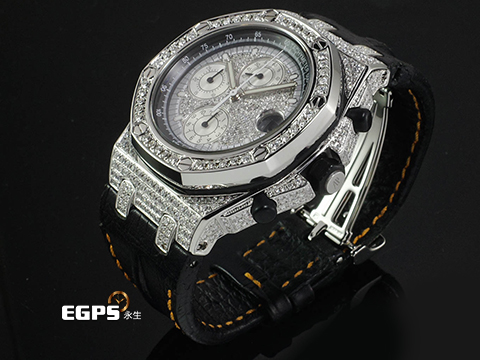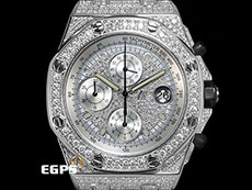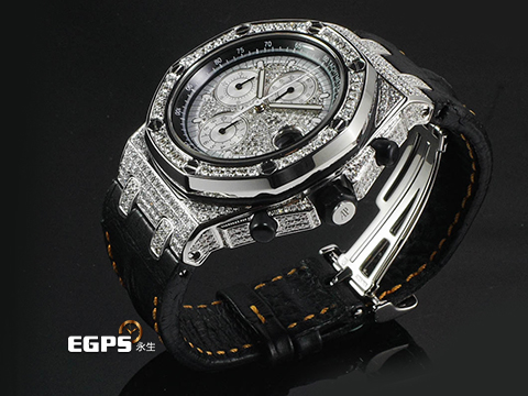| Audemars Piuget 愛彼 AP錶 Royal Oak Offshore 25940 皇家橡樹離岸型 不鏽鋼材質 精鑲鑽石滿天星面盤、鑲鑽錶圈、鑲鑽錶殼 自動上鍊 計時碼表 42mm |