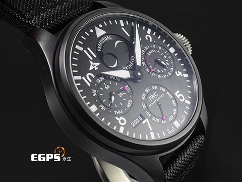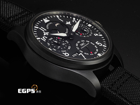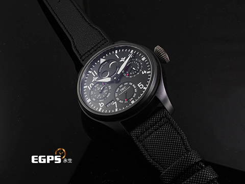 | IWC 萬國錶 Big Pilot 大飛行員 IW502902 七日鍊 黑陶瓷材質 經典南北月相 萬年曆、四位數字年份顯示 海軍空戰部隊圖案錶背 自動上鍊 48.6mm |