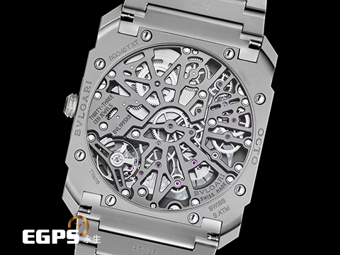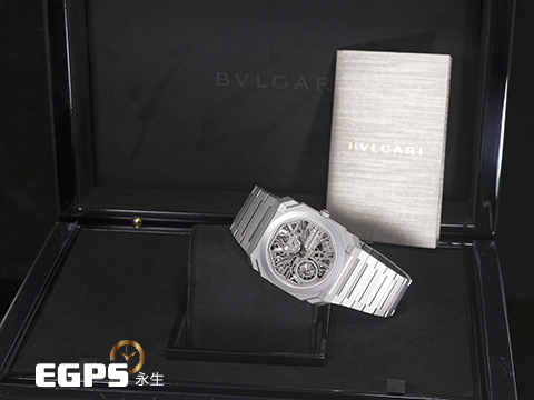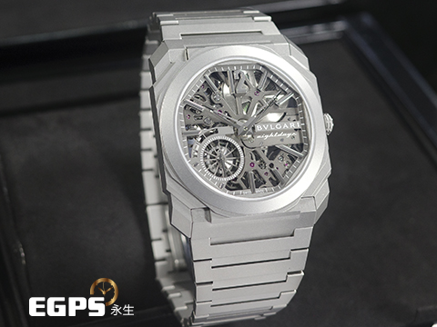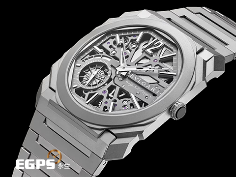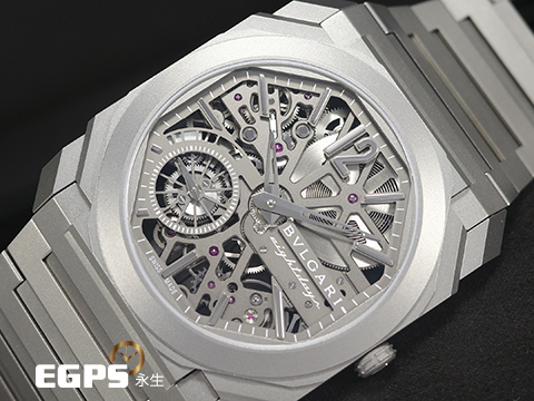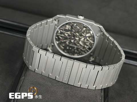 | BVLGARI 寶格麗 Bulgari Octo Finissimo系列 Skeleton 8 Days 103610 超薄 鈦金屬 鏤空面盤 經典八角形多稜角設計錶框 八日鍊 小秒針 2025年保卡 手上鏈 40mm |
