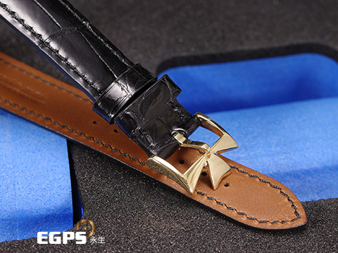 18K玫瑰金材質錶殼及馬爾他十字穿帶錶扣 / 精鑲鑽石錶圈 / 環形「珠粒式」分鐘刻度圈 / 立體鑲嵌時標 / 全新客製化黑色鱷魚皮錶帶 / 藍寶石水晶玻璃鏡面 |