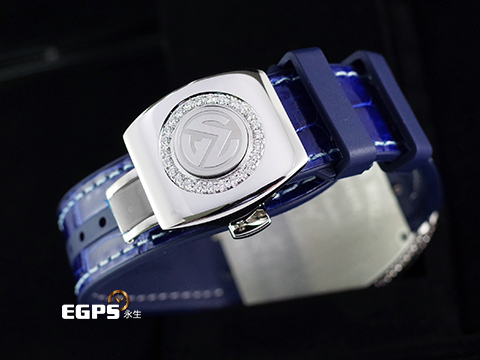 材質: 非原廠鑲嵌高等級天然美鑽鑽框、摺疊扣、不鏽鋼錶殼、旋入式錶冠 / 深藍色面盤、夜光指針、立體阿拉伯數字時標 / 原廠藍色皮革包覆橡膠錶帶 / 藍寶石水晶玻璃